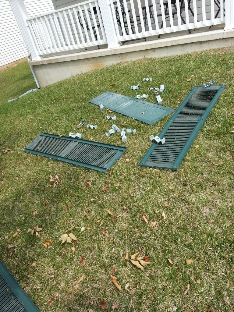 SO…to our local home improvement store we went to buy new shutters. I am very glad we did replace them actually because it wasn’t until we bought new ones that I realized the person who put the current shutters on the house had selected a size several inches too small. So, now we have pretty shutters, appropriately sized.