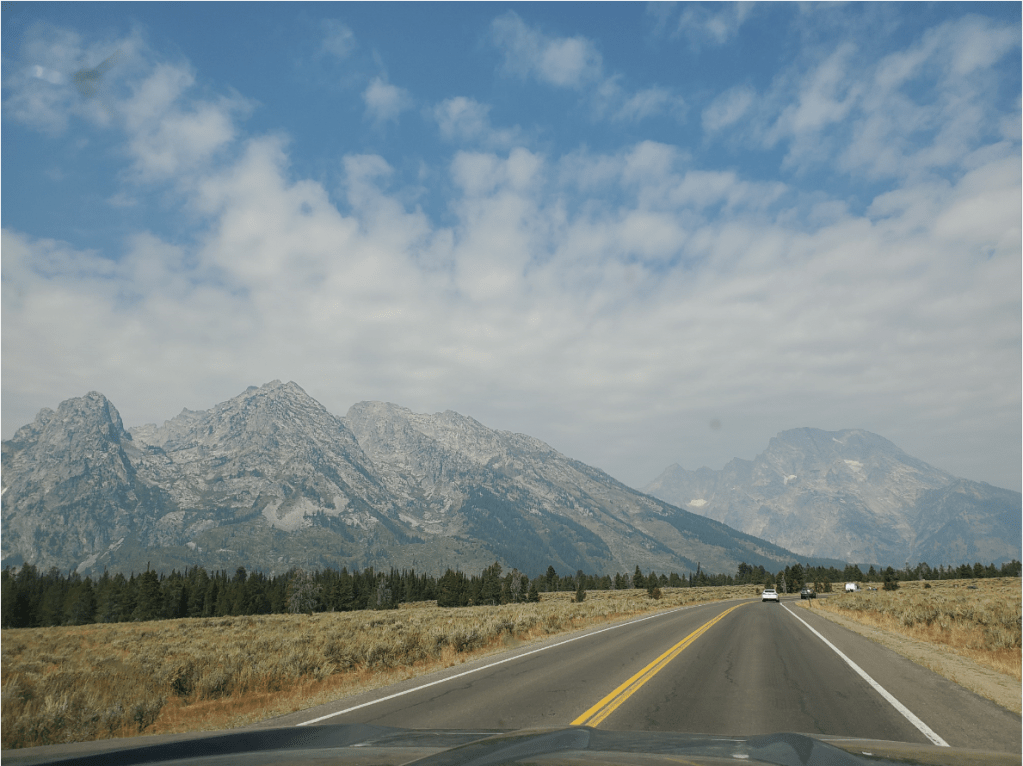 Not long after using our America the Beautiful pass (get one!) to enter we were rewarded with beautiful scenery: towering Grand Teton mountains in the backdrop.